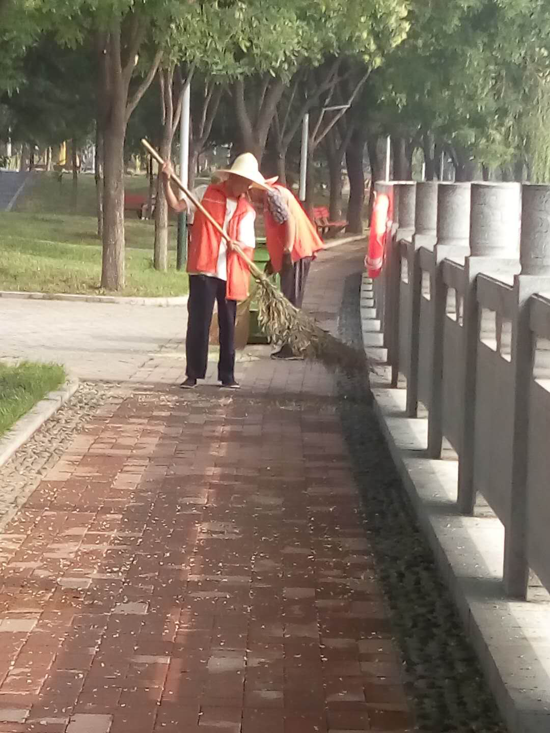 專(zhuān)注、認真的清掃路面,一絲一毫也不漏掉