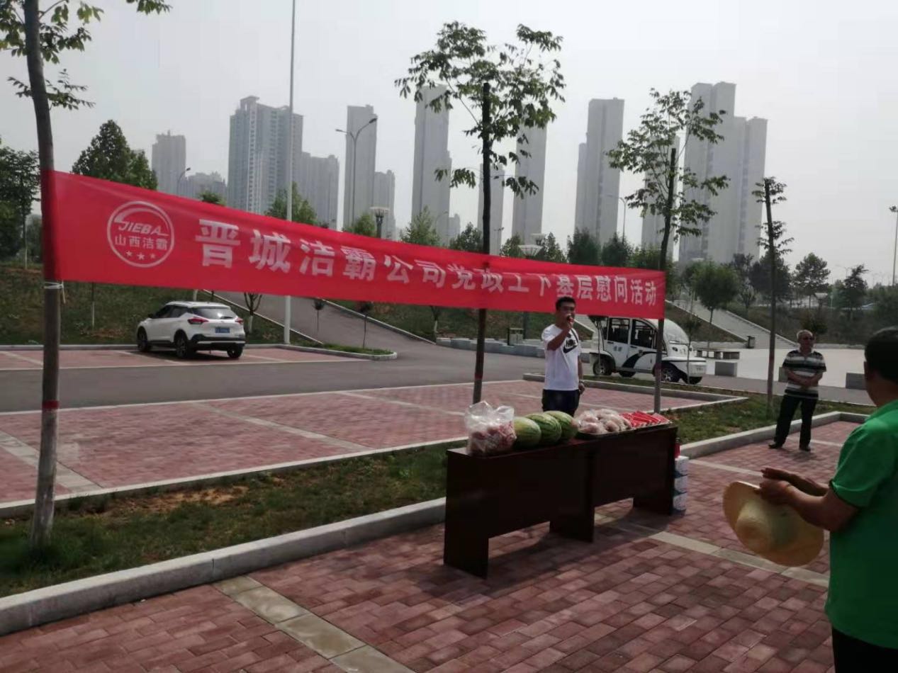 暑期盛夏,赤日炎炎7月19日上午,晉城潔霸公司黨政工暑期“情系一線(xiàn)”下基層慰問(wèn)系列活動(dòng)啟動(dòng)。在工會(huì )主席崔偉同志率領(lǐng)下,慰問(wèn)活動(dòng)小組首站來(lái)到了晉城市帶狀公園,看望了辛勤奮戰在園林一線(xiàn)的員工,給員工送去了面包、西瓜、白糖等慰問(wèn)品,表達了公司領(lǐng)導的親切關(guān)懷。