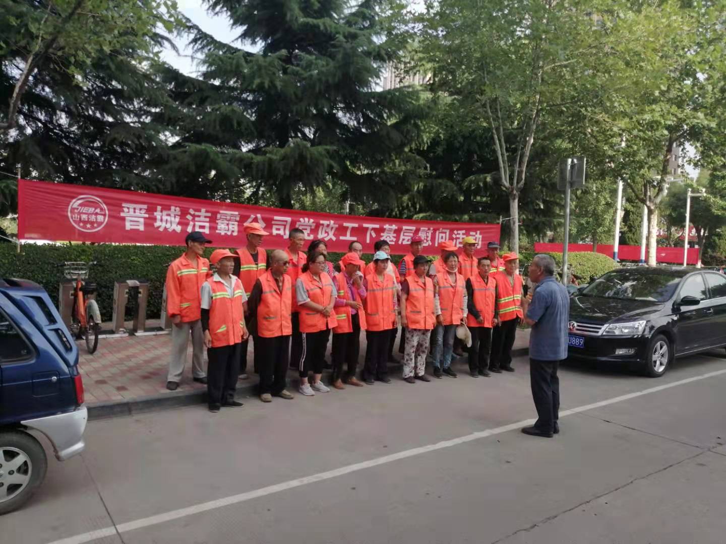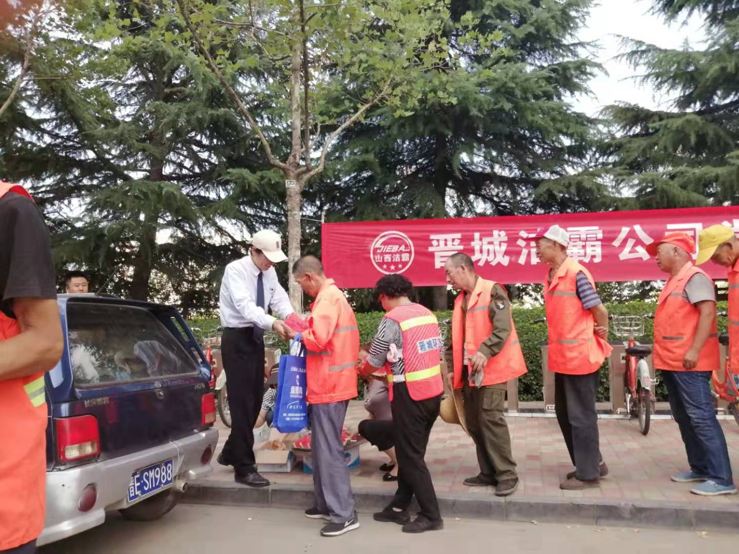 “大家辛苦了!”工會(huì )崔主席面對站在對面的滿(mǎn)臉汗水的環(huán)衛員工深深一鞠躬,向高溫下奮戰在一線(xiàn)的環(huán)衛員工們表示感謝。崔主席說(shuō),大家從事的環(huán)衛工作雖苦、臟、累,但是大家心靈美,創(chuàng )建全國文明城市有咱的功勞,這是咱們潔霸的榮耀!他叮囑隨行的保潔部主管,在炎熱的夏季要時(shí)刻關(guān)心一線(xiàn)的員工,多傾聽(tīng)員工的心聲,積極為他們做好后勤保障工作。他囑咐環(huán)衛員工們,在高溫下作業(yè)要做好防暑降溫工作,確保自身健康安全。工作中要積極配合主管,共同把工作干好。
