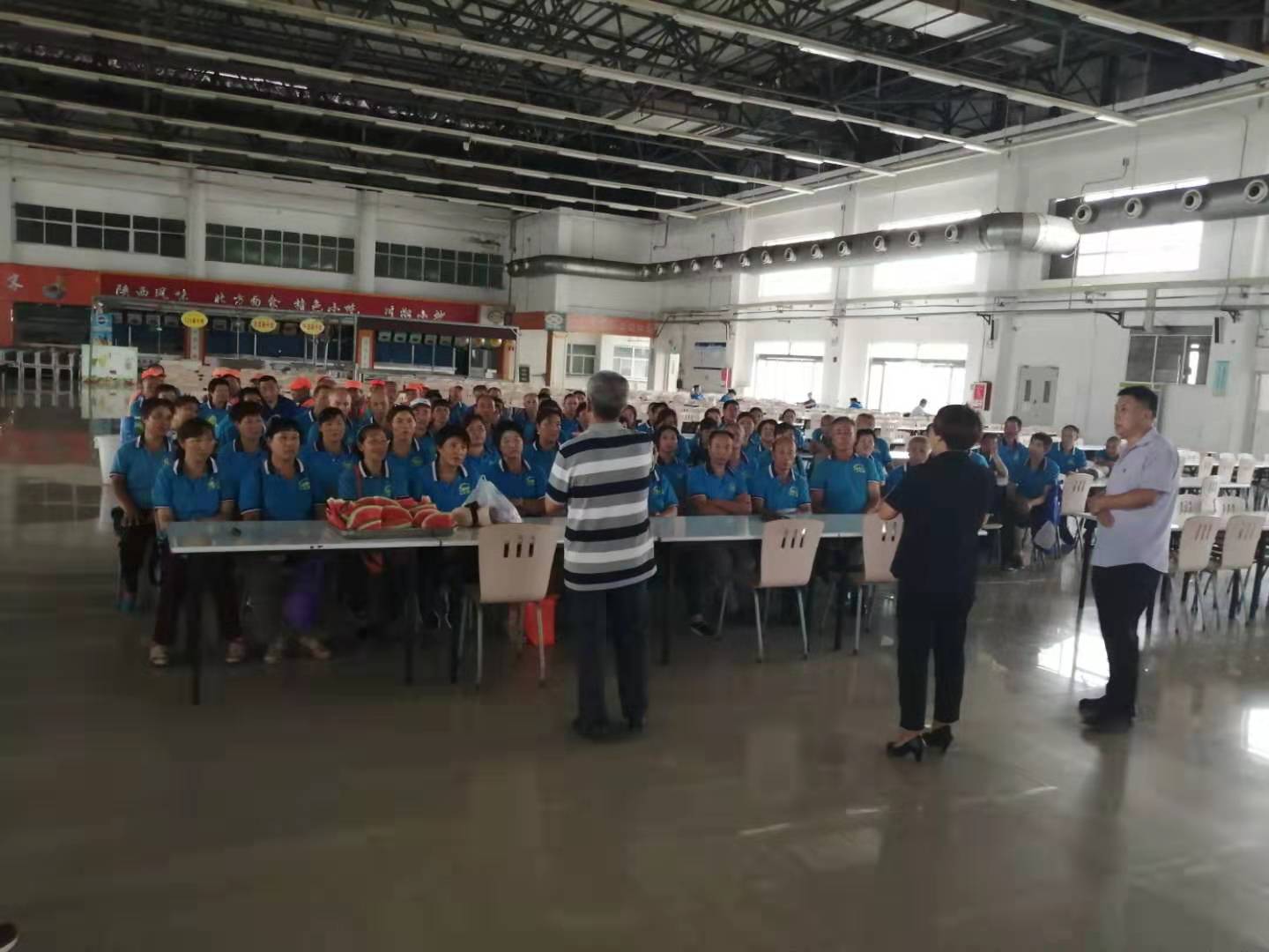 在富士康餐廳二樓,利用工作人員切西瓜的間隙,公司總經(jīng)理程晉軍作了簡(jiǎn)短的講話(huà)。他說(shuō),前一段時(shí)間,公司召開(kāi)了“安康杯”勞動(dòng)競賽動(dòng)員大會(huì ),大家要提高安全意識,始終把安全工作放在心上。他囑托大家在夏季工作中一定要注意防暑,感謝大家在酷暑下依舊兢兢業(yè)業(yè)奮斗在各自的工作崗位上。工會(huì )主席崔偉也作了簡(jiǎn)要發(fā)言,他說(shuō),今年是潔霸公司成立二十周年,希望大家在工作中繼續發(fā)揚潔霸精神,積極樹(shù)立潔霸形象,為公司爭光。