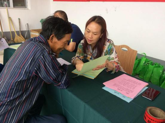 志愿者為農村剩余勞動(dòng)力介紹潔霸公司招工簡(jiǎn)章 村民們認真閱讀招工簡(jiǎn)章。