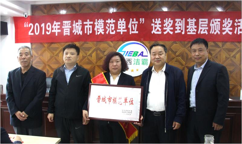 公司副總經(jīng)理史志霞首先介紹了公司的基本情況。隨后市總工會(huì )商貿工會(huì )主席張玉濤宣讀了晉城市潔霸清潔公司榮獲“2019年晉城市模范單位”批復表彰文件,市總工會(huì )副調研員刁忠孝向公司副總經(jīng)理史志霞授帶頒獎,并頒發(fā)了獲獎榮譽(yù)證書(shū)。