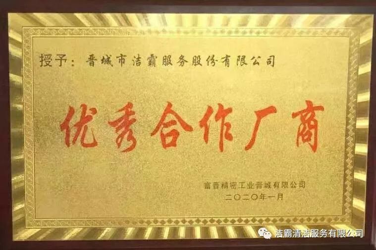 1月21日,富士康(晉城)科技工業(yè)園區召開(kāi)2019年綠化環(huán)衛服務(wù)廠(chǎng)商表彰大會(huì )。會(huì )上,我公司喜獲“優(yōu)秀合作廠(chǎng)商”稱(chēng)號。