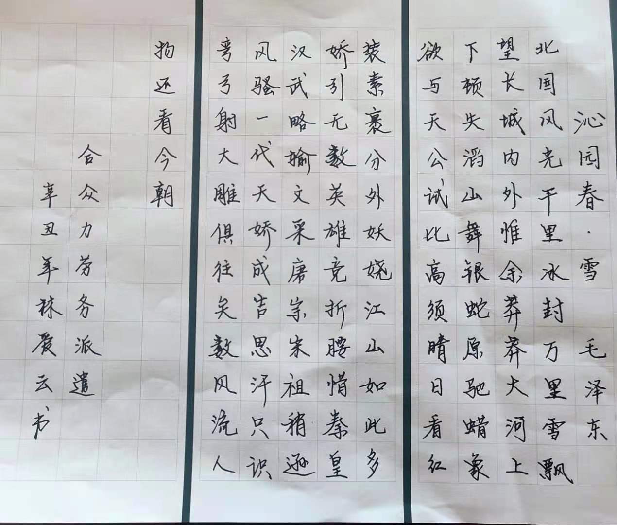 本次硬筆書(shū)法比賽活動(dòng)圍繞“喜迎建黨百年華誕”主題,以摘抄歌頌黨、歌頌祖國、歌頌企業(yè)的詩(shī)詞、散文、歌賦等為書(shū)寫(xiě)內容,參賽選手個(gè)個(gè)滿(mǎn)懷激情,用心書(shū)寫(xiě)每一個(gè)漢字,筆畫(huà)流暢,結構勻稱(chēng),整體美觀(guān),表現出良好的書(shū)寫(xiě)功底。公司組織相關(guān)人員對參賽員工的作品進(jìn)行客觀(guān)公正的評審,評選出一、二、三等獎若干名。