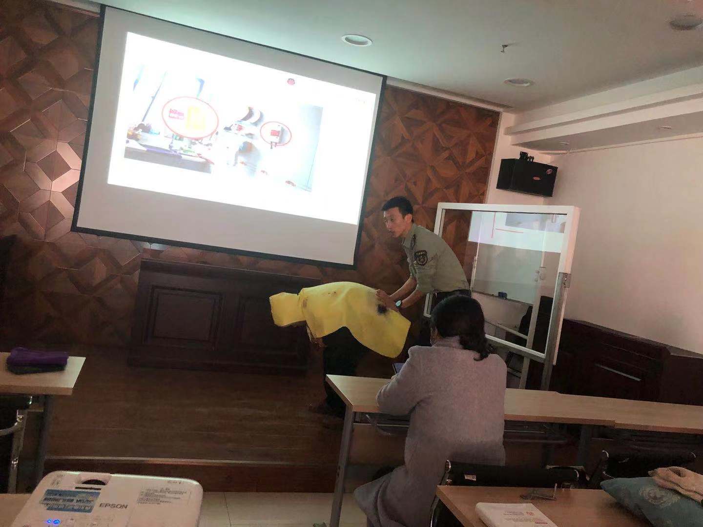 培訓中,李偉教官還向大家介紹了一些生活中的防火小技巧,如:燃氣著(zhù)火要及時(shí)關(guān);油鍋著(zhù)火時(shí)最好使用滅火器、滅火毯等,或使用冷油降溫、切碎蔬菜等澆滅;提倡大家要養成“人走電斷”的好習慣等。隨后,又向大家講解了各類(lèi)火災的自救方式,特別是讓每個(gè)員工重新認識了一些預防火災的新知識,尤其是家庭預防火災4件寶(小型滅火器、逃生的繩索、手電筒、防煙面罩),讓大家對這些消防器材有了更深一步的了解。最后,消防宣傳員演示了如何正確使用滅火器。
