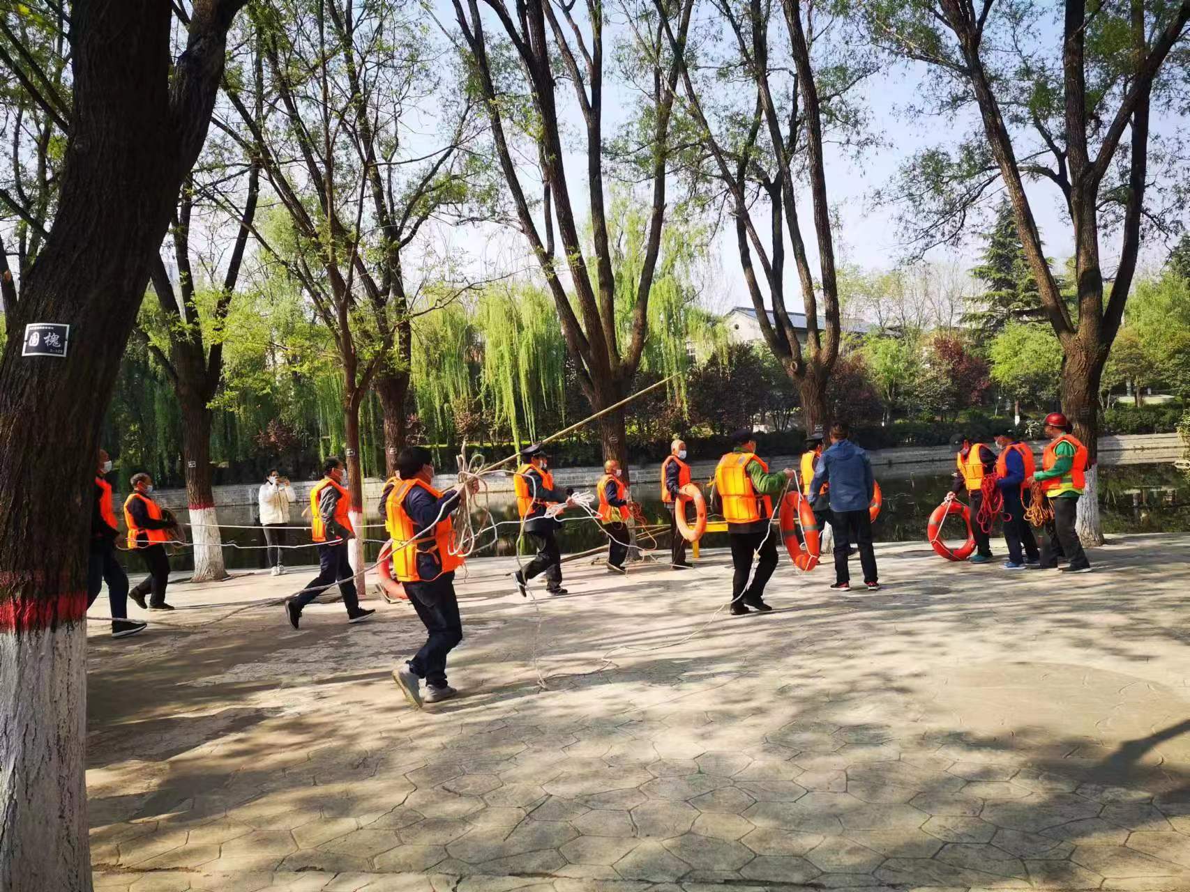 為進(jìn)一步強化應急預案保障措施的落實(shí),提高管理人員和員工防汛搶險應急反應和處置能力,教育管理人員及員工如何正確、準確應對極端天氣,迅速處理防汛突發(fā)事件,4月18日上午,合眾力公司景觀(guān)河道項目點(diǎn)在西秀園組織開(kāi)展防汛搶險應急演練。