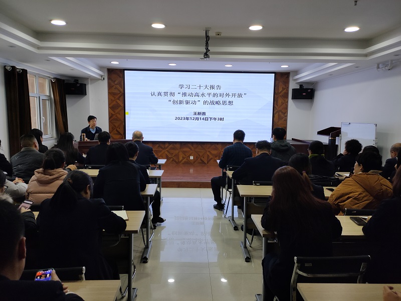 12月14日下午,公司舉辦“對外開(kāi)放”“創(chuàng )新驅動(dòng)”專(zhuān)題講座,邀請市商務(wù)局原局長(cháng)王新善圍繞二十大報告的重點(diǎn)內容“推動(dòng)高水平對外開(kāi)放”“創(chuàng )新驅動(dòng)”等進(jìn)行宣講。