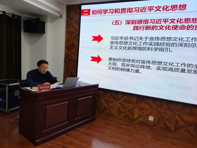 為深入學(xué)習貫徹習近平新時(shí)代中國特色社會(huì )主義思想主題教育,提高黨員的政治素養和黨性修養,12月20日,市非公企業(yè)黨委委員郝天順以《深入學(xué)習貫徹習近平文化思想 進(jìn)一步推進(jìn)非公企業(yè)文化建設》為題為公司支部全體黨員和入黨積極分子講授了一堂主題教育專(zhuān)題黨課。