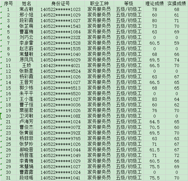 2024年8月31日第33批家政服務(wù)員初級認定人員成績(jì)公示