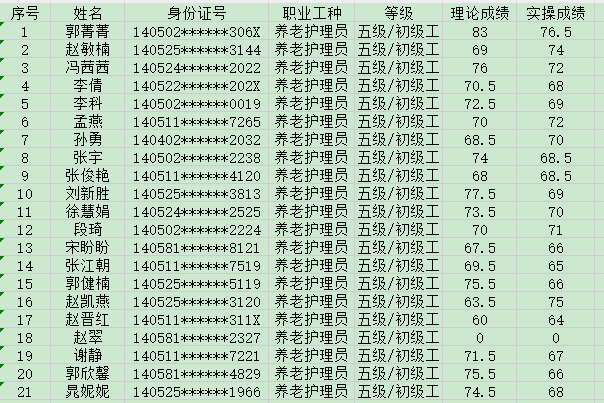 2024年9月1日第35批養老護理員初級認定人員成績(jì)公示
