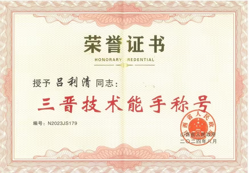 | 我公司呂利清榮獲“三晉技術(shù)能手”稱(chēng)號 |