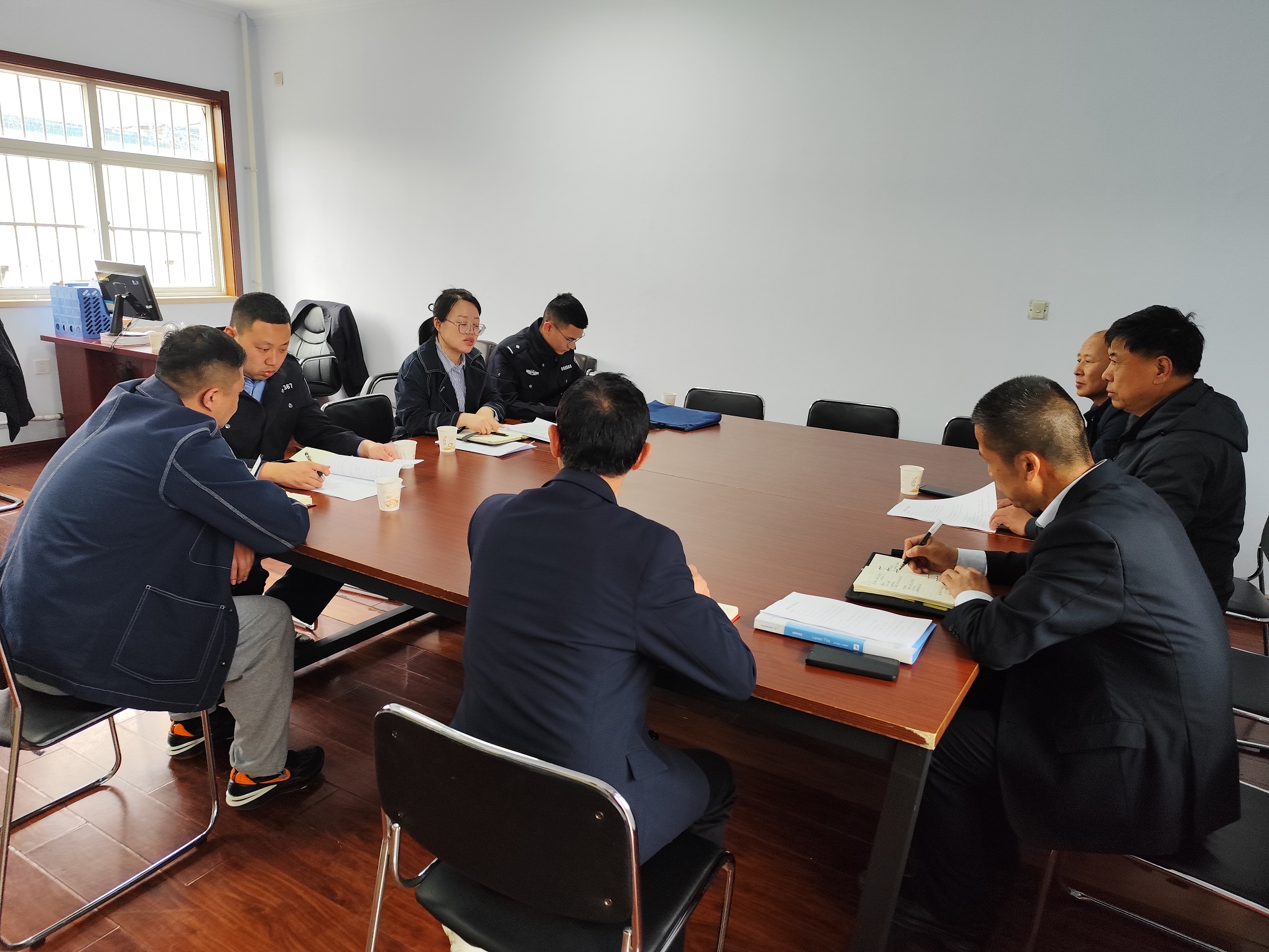 調研組一行聽(tīng)取了保安公司經(jīng)理姜智海對保安公司基本情況、人員架構、員工培訓、服務(wù)點(diǎn)位、經(jīng)營(yíng)狀況、員工社保繳納情況以及警保聯(lián)勤聯(lián)動(dòng)情況等多個(gè)方面的詳細匯報,對保安公司合規運營(yíng)與重視員工權益保障給予了充分肯定。
