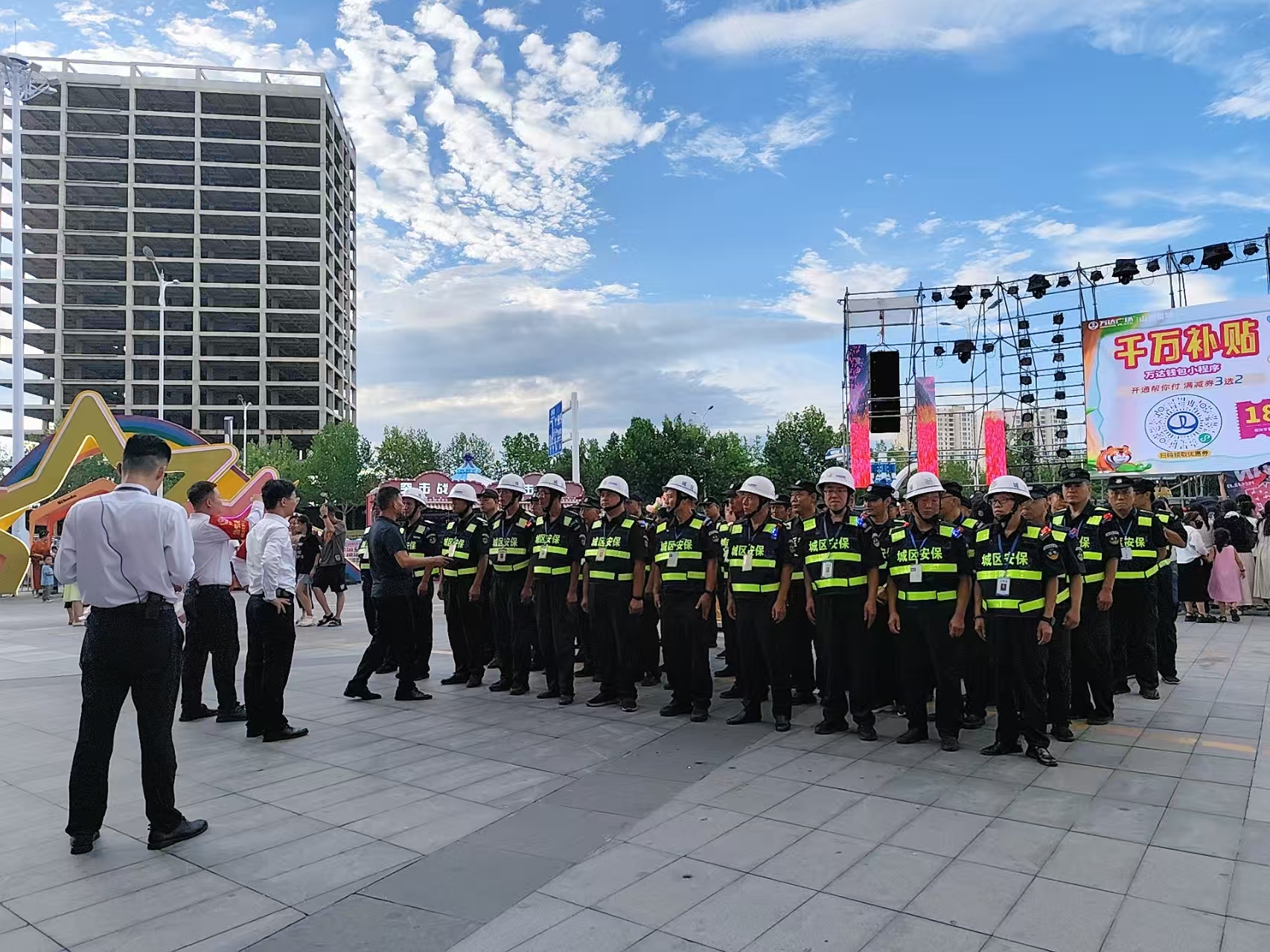活動(dòng)期間,城區保安人員按照既定方案,每天晚上6點(diǎn)到崗到位,配合公安、消防等部門(mén)做好秩序維護、交通疏導及服務(wù)保障等工作。出入口崗位的保安負責引導群眾有序進(jìn)出,舞臺周邊的保安重點(diǎn)維護觀(guān)眾秩序,防止擁擠、踩踏等危險情況發(fā)生。盡管每天晚上工作時(shí)間長(cháng)達6小時(shí),他們時(shí)刻保持警惕,沒(méi)有絲毫放松,F場(chǎng)人流量一度突破萬(wàn)人次,但執勤保安始終用規范的動(dòng)作、耐心的態(tài)度引導人流,以嚴謹的工作作風(fēng)和飽滿(mǎn)的精神狀態(tài)為活動(dòng)保駕護航。