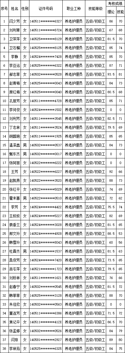 山西潔霸清潔服務(wù)集團股份有限公司職業(yè)技能等級認定中心2025年11月9日第2批養老護理員初級認定人員成績(jì)公示
